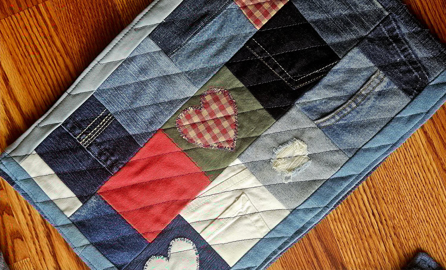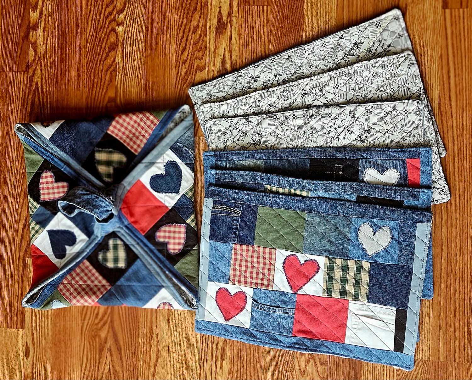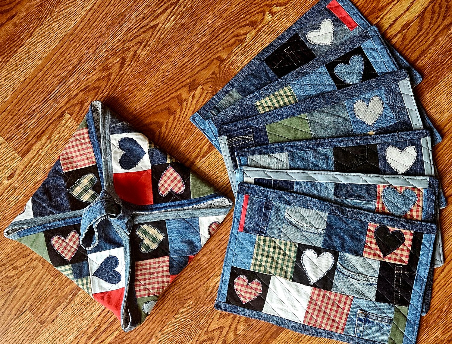 The fun placemats are great for any gathering. Quilted and made 100% recycled scrap materials.