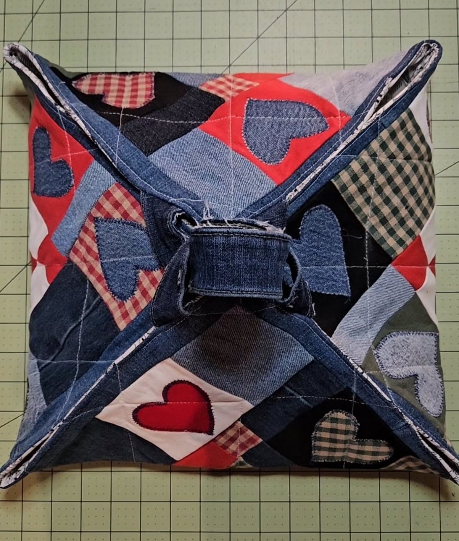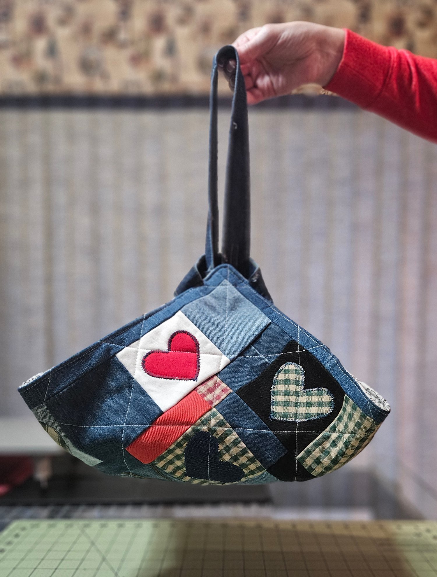 Made with 100% recycled denim and cotton. Machine wash, cool setting. Low setting in dryer. Can be hand washed.