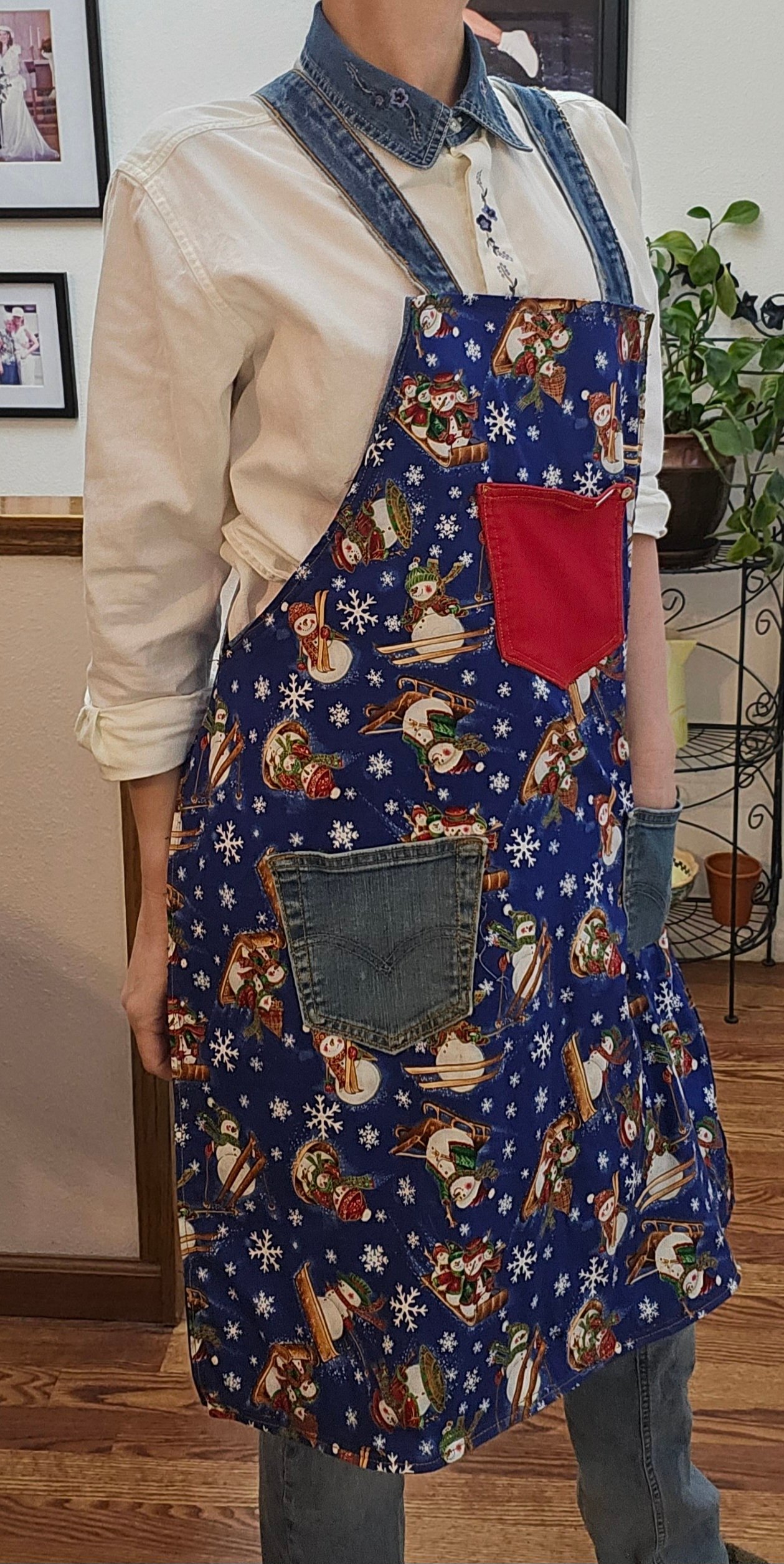 Three functional pockets on the snowman theme side.